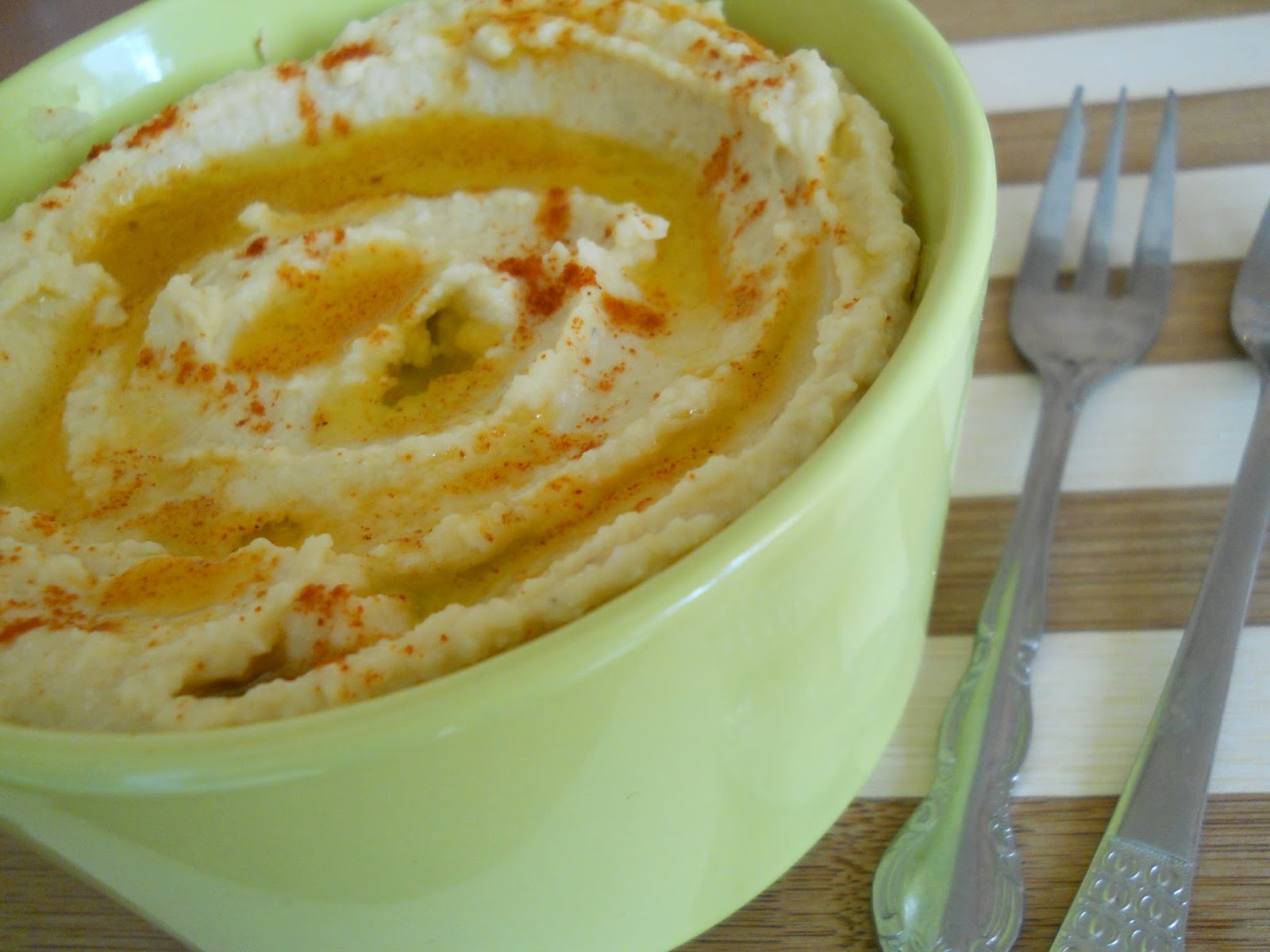 Nautul se spala si se lasa in apa la imnuiat peste noapte.A doua zi se arunca apa ,se spala si se pune la fiert cu sare pentru 60-90 minute la foc mic.Se strecoara nautul,iar din apa in care a fiert mai oprim un pic.Se adauga cateii de usturoi curatati,pasta de tahini si zdrobim totul cu blenderul pina devine ca o pasta.Daca este prea groasa mai adaugam un pic din apa in care a fiert nautul.Se mai adauga sare dupa gust.Se serveste cu ulei de masline deasupra si se presara si putina boia de ardei.POFTA BUNA!